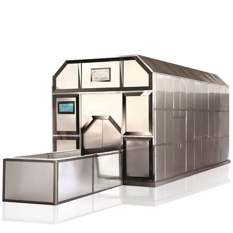 (Macchina per cremazione a piastra piana): Caratterizzata dalla sua superficie di carico piatta, offre praticità nel caricare il corpo. È progettata per un funzionamento regolare e processi di cremazione efficienti.
